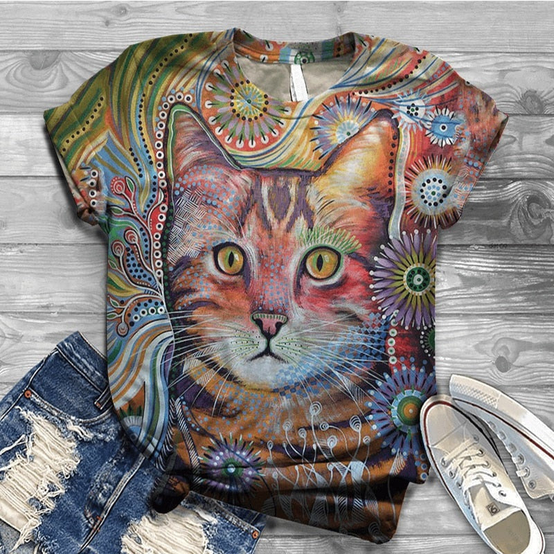New women's clothing - Casual round-neck short-sleeved cat digital print fashionable casual women's T-shirt