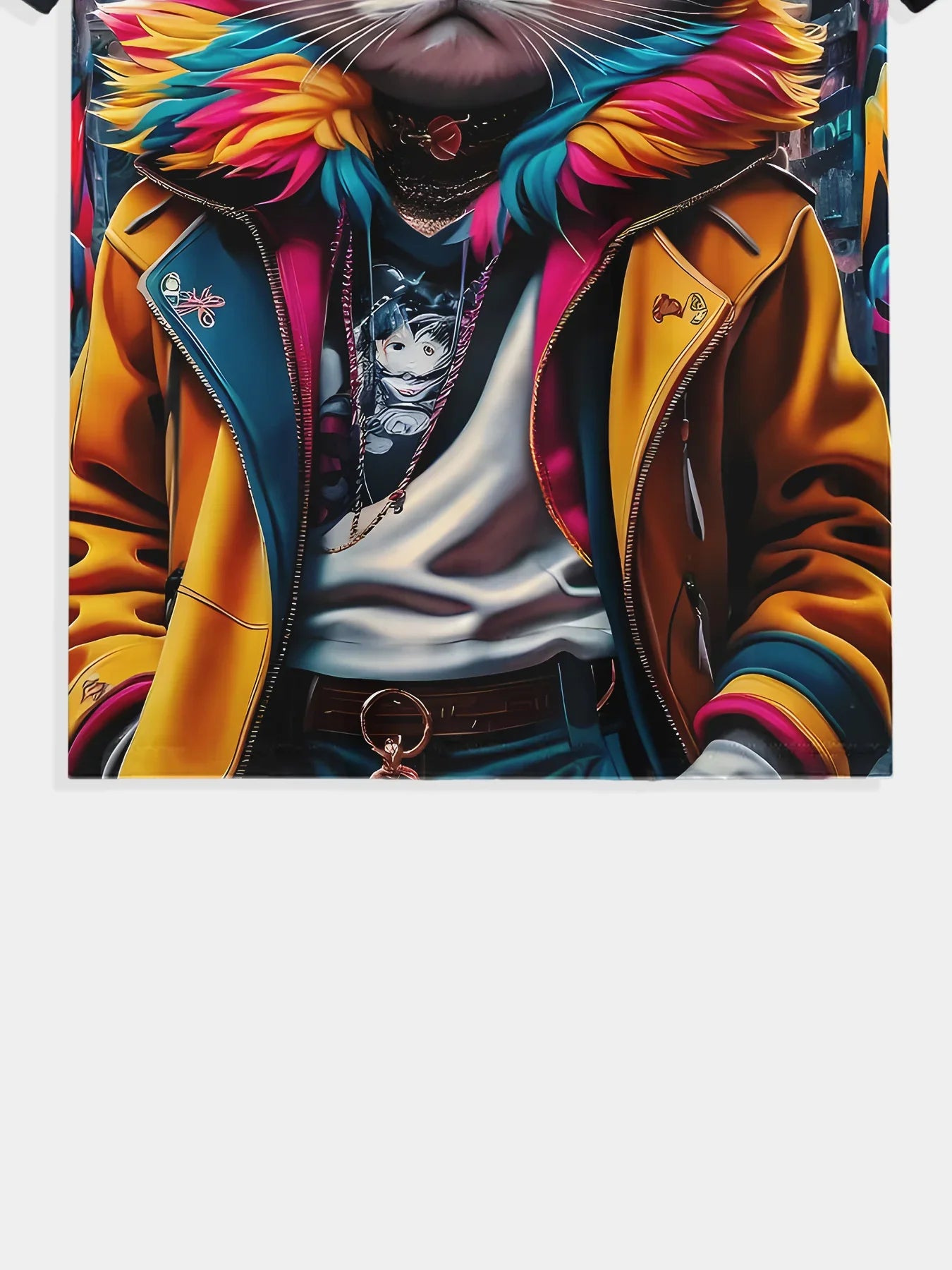 Men's Summer Fashion T-Shirt with Cool Cat 3D Print – Comfortable Polyester,Round Neck,Short Sleeves,Vibrant Casual Wear